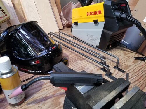 昨年、MMA溶接と半自動溶接の両方ができる 溶接機が販売される事を知り ようやく溶接機を購入する決心がつきました。 SUZUKID Arcury80NOVA です。 これを機に「万力」等買わずにいた物も揃え 娘の部屋造りの〆にアイアン格子を造りました。 TRUSCOの万力で…